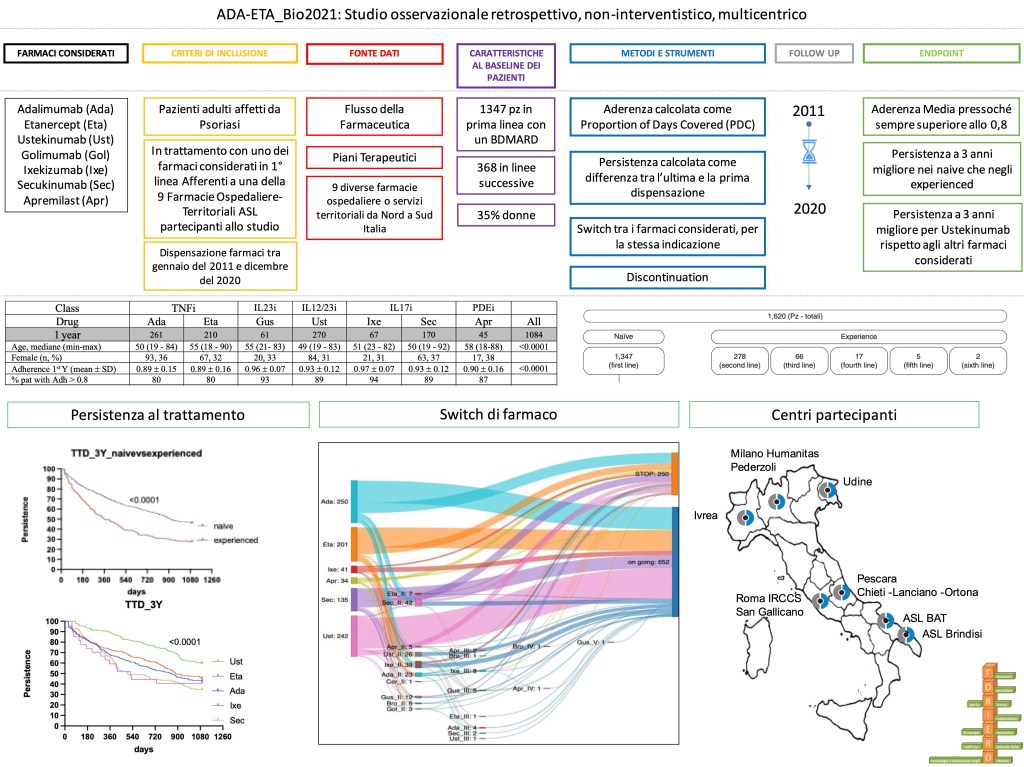 In questo lavoro si va a fare un confronto diretto dei BDMARDs usati nella Psoriasi, su un periodo di osservazione di 14 anni, dal 2007 – 2020, su 9 centri sparsi per l’Italia, da Nord a Sud.