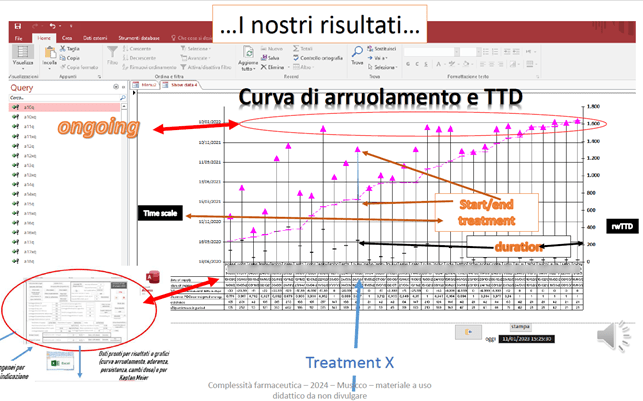 In particolare, per farmaco-indicazione è immediatamente ricavabile la nostra curva temporale di arruolamento con le durate di ogni trattamento: